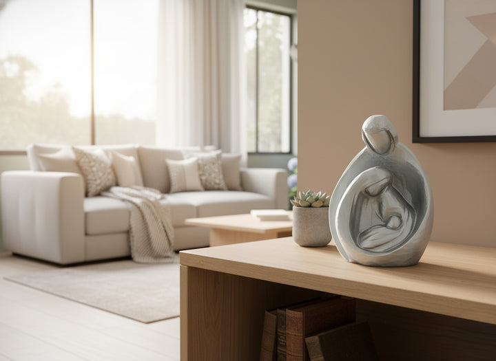 Discover the profound beauty and timeless message of our exquisite Modern Holy Family Statue. This stunning piece of art reinterprets the classic nativity scene with an elegant, abstract design, making it a perfect addition to any contemporary home or sacred space.